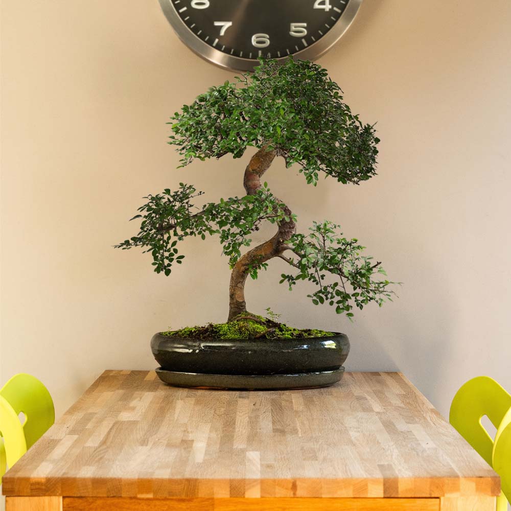 An indoor bonsai is a beautiful addition to your interior. This miniature tree brings peace and natural beauty into your home. You can choose from popular species such as Ficus, Carmona, Zelkova and Ligustrum. Each bonsai is easy to care for and fits perfectly in any space. With the right care, your bonsai will grow for years. Whether you are looking for a small or larger size, there is always a bonsai tree that suits your style. Discover our range and choose the bonsai that completes your interior.